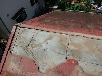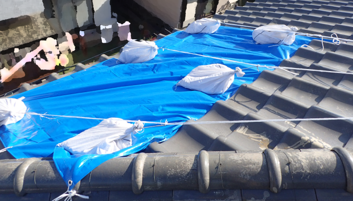 お客様のお住まいでは、以前の台風で棟瓦が倒壊してしまい、ブルーシートで養生していたそうです。