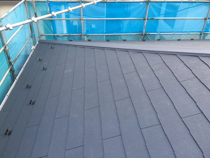 屋根材設置が終わり、棟板金などの取り付けまでが終われば工事は完了です。(屋根葺き替え工事についての詳細ページはこちら)