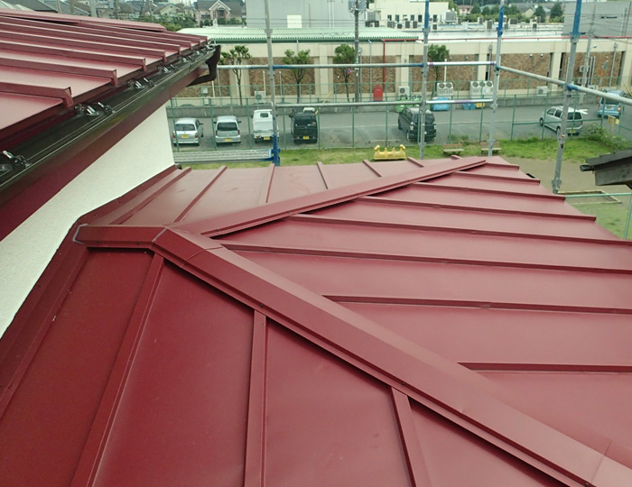また、屋根材の金属はこれまでトタンが使われていましたが、それよりも耐用年数が長いガルバリウム鋼板を使っているので以前よりも長持ちする屋根へと生まれ変わりました。街の屋根やさんでは屋根葺き替え工事で使用する屋根材についても様々なタイプを取り扱っております。また、工事をご検討の方も現調からお見積りまで無料ですのでお気軽にご相談ください。