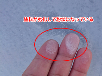 塗装前は塗料の劣化によるチョーキング(白亜化)が見られます