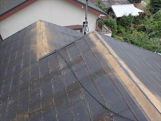 また、屋根全体的に繁殖している苔(コケ)や、水はけが悪くなった表面にこびり付いた砂ほこりなどの汚れも目立っていました。