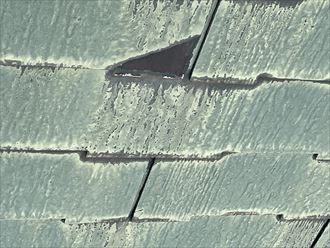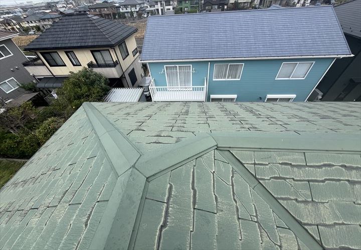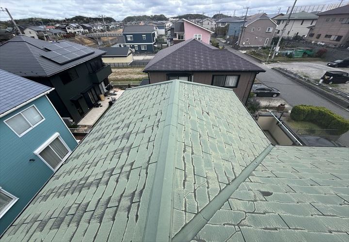 5年ほど前に購入したときには屋根は綺麗だったそうですが現在は退色が進んでおりまた、無数のランダムなひび割れが発生しておりました( ゚д゚)