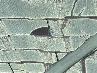 塗装ではもたない状態となってしまっている為、カバー工法若しくは葺き替え等、早目のメンテナンスは必要と考えます(-_-;)