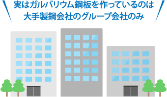 - ●大手製鋼会社のグループによりガルバリウム鋼板は製造されています