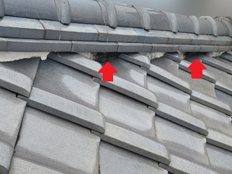 ① 崩れやすい棟部分の補修(棟の積み直し)