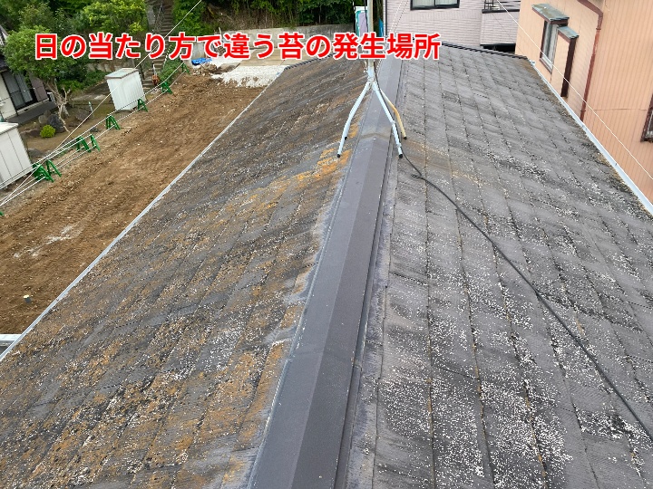 苔・藻・カビは水分を好み繁殖しますから、それらが見られる屋根材・外壁材は水分が滞留している証と言えるでしょう。