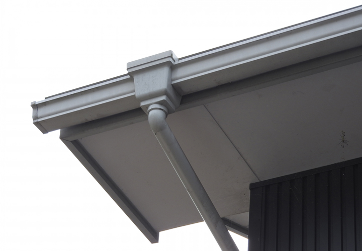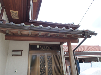 雨量が多い雨天時に一階部分の屋根に取り付けられている雨樋の溢れが気になっていたお客様。雨水が上手に排水されず滝のようにあふれ出てしまっているとご相談をいただきました。
