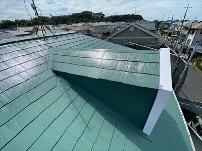 お住まいの屋根をご覧いただいたときに屋根の色が剥げてきている、苔や藻の繁殖で屋根が広い範囲で緑色になってしまっている際は塗装が必要なタイミングになっていると考えましょう。