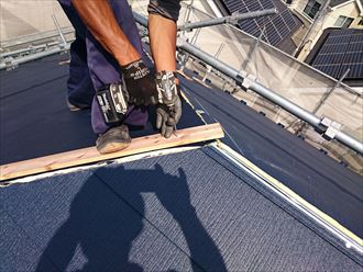 棟で重ねて雨水が入り込まないようにしていきます。