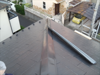 その他棟板金などの”後付け役物”と言われる箇所の施工をすると屋根葺き替え工事が無事完了となりました(*'▽')