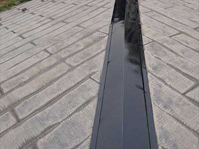 仕上げに板金同士の重なり部分をコーキング処理して棟板金交換工事完了です。