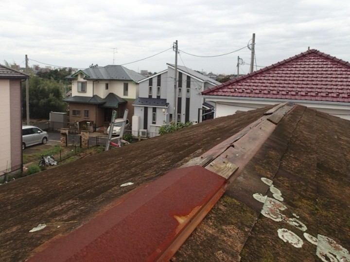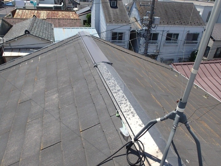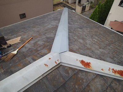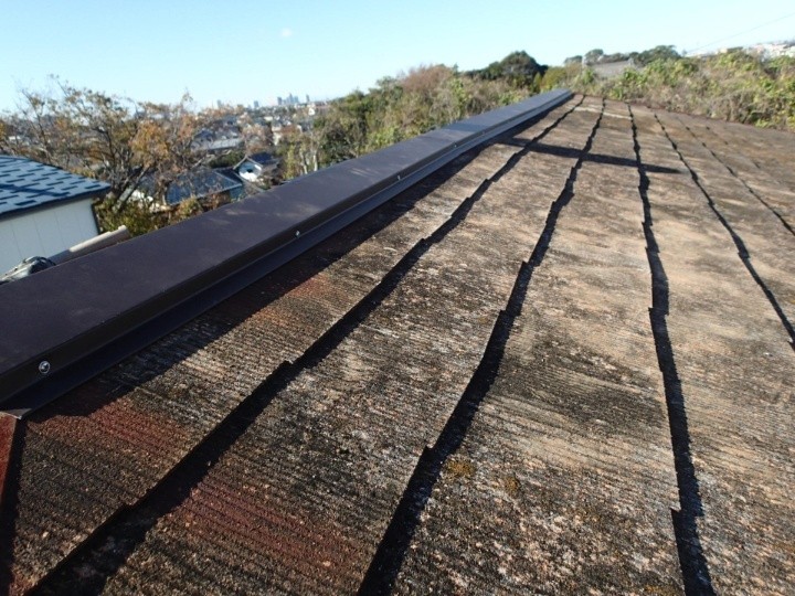 小田原市酒匂にて台風被害で破損した棟板金の交換工事を実施しました