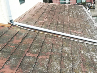 特に北側の陰になる部分では、カビがうっすらと生えて黒ずんだ印象でした。