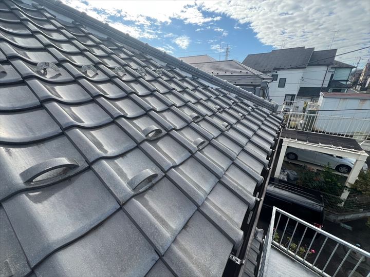 屋根材を傷めないよう、丁寧に汚れをそぎ落としながら清掃を行っていきます。