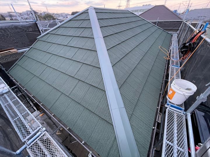 相模原市中央区千代田にて飛散した棟板金に交換工事を実施!併せて「屋根・外壁」塗装工事も施工