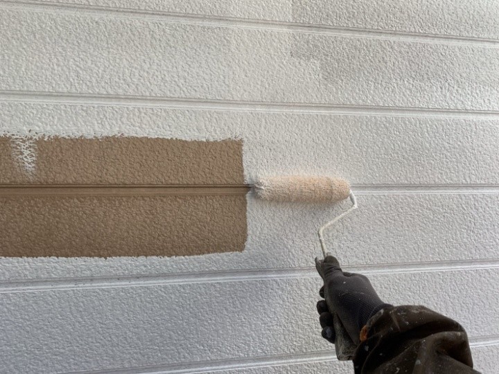 下塗り塗料が十分に乾燥したことを確認してから、ローラーで丁寧に塗装を行います。