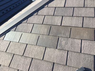 屋根については、5年ほど前に台風の影響で棟板金が飛ばされてしまい、その際に塗装も同時に施工されたそうですが、外壁は予算の関係で見合わせた経緯があるとのことでした。