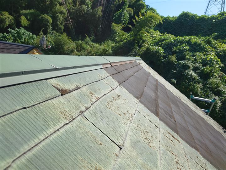 横浜市磯子区E様邸も同様で、玄関側となる北面には汚れや苔が目立っていました。