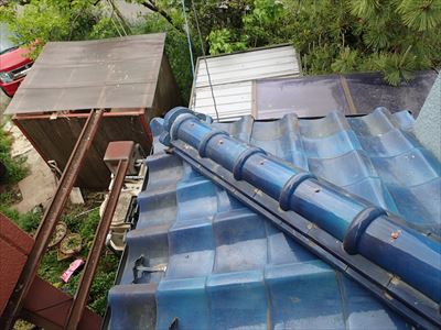 屋根材が割れてなくなれば防水紙が露出し、太陽光や雨水にさらされることで傷み結果として雨漏りが発生してしまうので、屋根材が劣化しないように屋根塗装や補修が必要なのです。恐らくお住まいを建てられてから一度も塗装を行った形跡がないため近々メンテナンスは必要かと思いますが、まずは棟板金の復旧工事が最優先です。