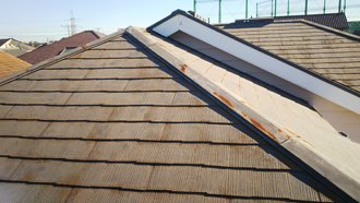 その塗装が劣化してしまっていますので、スレートが雨水を吸ってしまい、カビや苔を繁殖させてしまったようです。