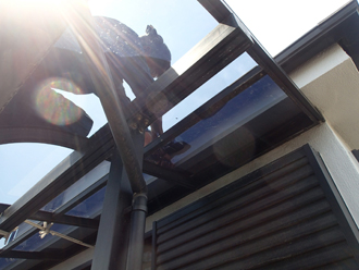 芝山町新井田にて台風被害に遭われたベランダのポリカーボネート屋根の補修工事を行いました