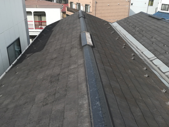 三鷹市牟礼にてビルの変形した斜壁をヒランビーで葺き替え