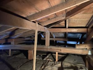 雨が降るたびに天井にポタンと音が鳴り完全に雨漏りが発生しているという事で、東京の業者さんに小屋裏の中を確認してもらいたいと打診はしたそうですが、逆に強く言われてしまったそうです。もう点検をしてもらえないとの事でしたので、私たち街の屋根やさんが現地調査時に小屋裏の点検をした所、棟木から雫が垂れている事を確認出来ました。ご自身では確認ができず困っていたと仰っていたので、小屋裏の状態を写真で見ていただきました。棟板金の場所から雨漏りが発生している事が解り、お客様も安心したそうです。