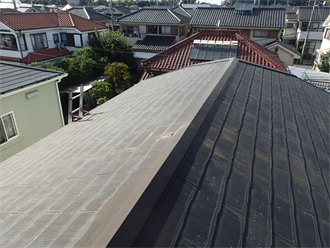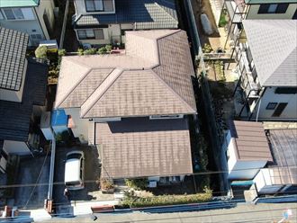 お建物は築30年程経過した木造2階建てのお建物で6年前に改修工事を行っている為、お建物自体には現在お困りごとは無く今回お困りになられているのは、カーポートの屋根部分でこちらは以前の改修の際には手直しはしておらず今回汚れが目立って来てしまいお困りになっているご様子でした。