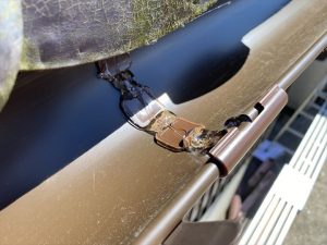 今回お客様の雨樋が破損した原因は、吊り具金物の劣化が原因で、雨樋が破損してしまいました、上総湊にお住いのお客様は比較的海から近く、金物類は塩害により劣化してしまう事が早く、気が付いたら破損していたと言うケースが多くあります、今回も住宅裏側により、吊金物が錆びている事に気が付かず、いつの間にか破損してしまっていたと言う状況でした。