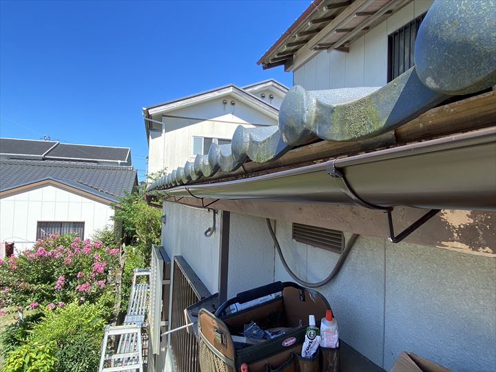 お客様のご自宅は、近隣様の敷地と屋根面が近い事もあり、雨樋が破損してしまうと雨水がお隣の敷地に流れ出してしまうと言う不具合が生じてしまいました。
