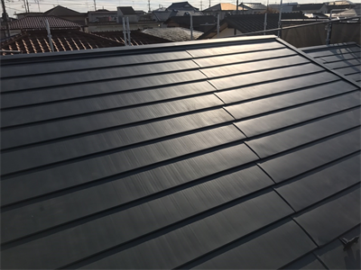 屋根カバー工事が終了致しました。これまでの屋根は、表面の捲れや色褪せにより見栄えが悪くなっていましたが、カバー工事を行うことで屋根の劣化も改善されデザイン性のある屋根材を使用しましたので見た目も大きく変わりました。屋根の劣化が気になり雨漏りの心配をしていたお客様でしたが、屋根をご確認頂き工事の仕上がりに満足頂くこともでき、雨漏りの心配も無くなったと安心していただくことが出来ました。