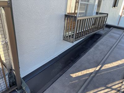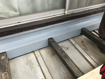 こちらは、ケラバ板金といい屋根の妻側に取り付ける板金になります。唐草と同じように水切りの役目があります。