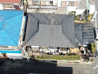 足立区西伊興にてスレート屋根に対しスーパーガルテクト(シェイドチャコール)を使用した屋根カバー工法でのメンテナンスを実施