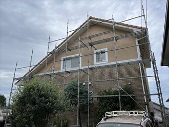 お客様に屋根の状況をご報告し、工事についてご説明させていただきました。工事として、仮設足場の設置後にケラバ瓦を取り外し、下地となる貫板を交換して瓦を戻す工事をご提案させていただき、工事のご依頼をいただき工事に着工いたしました。