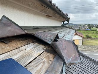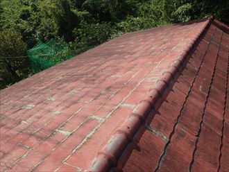 新しい瓦の設置状況です。瓦の設置の際に、風の影響を受けやすい場所であったので、瓦のズレなどを予防するために、釘固定を行いました。