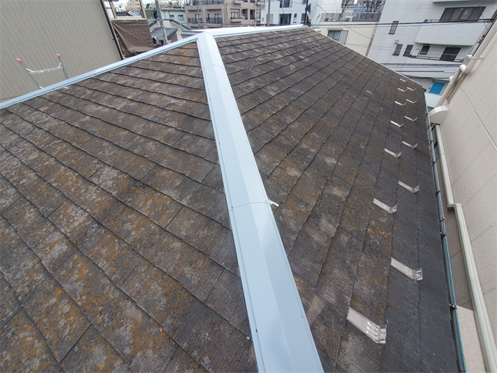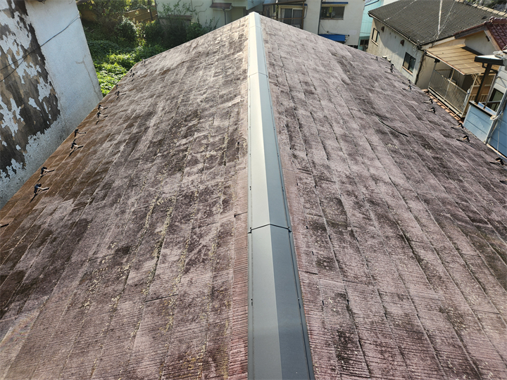 S様邸の屋根にはスレートにひび割れ等の破損は無かった為、塗装でのメンテナンスが可能な状態でした。