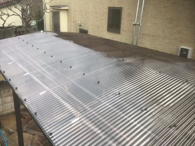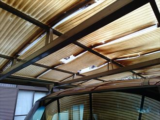 お施主様は撤去を選択いたしました。天窓のある屋根から天窓のない屋根にする工事を行います。